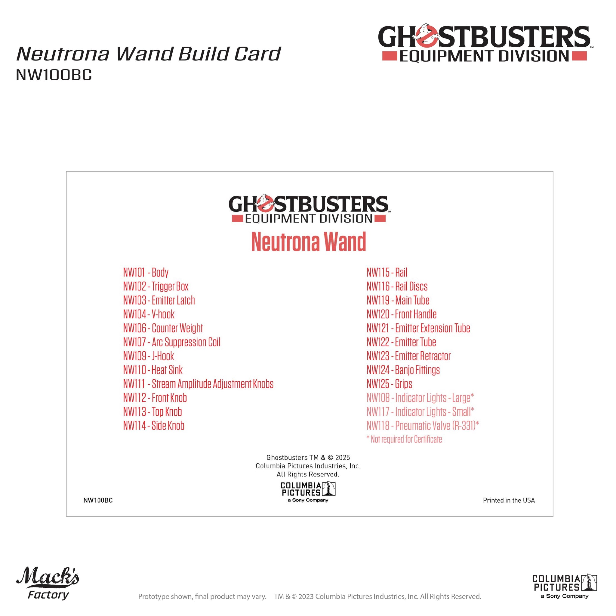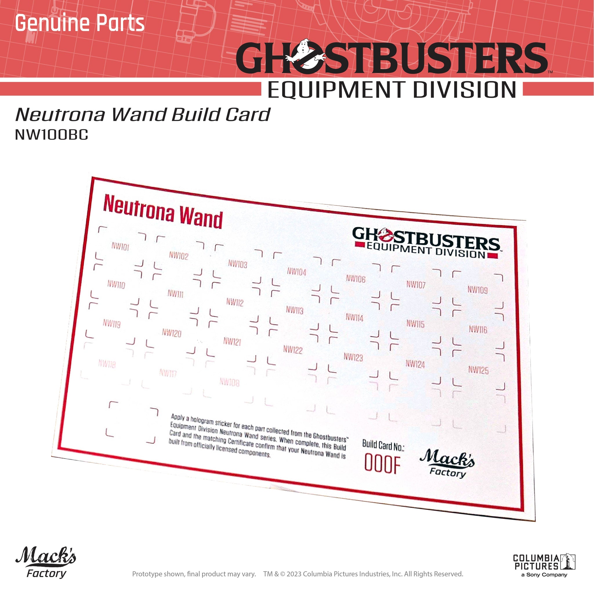 Apply one hologram sticker to this card for each part in the Ghostbusters Equipment Division Neutrona Wand series. When complete, this Build Card—together with the matching Certificate—confirms your wand is built from officially licensed components.
