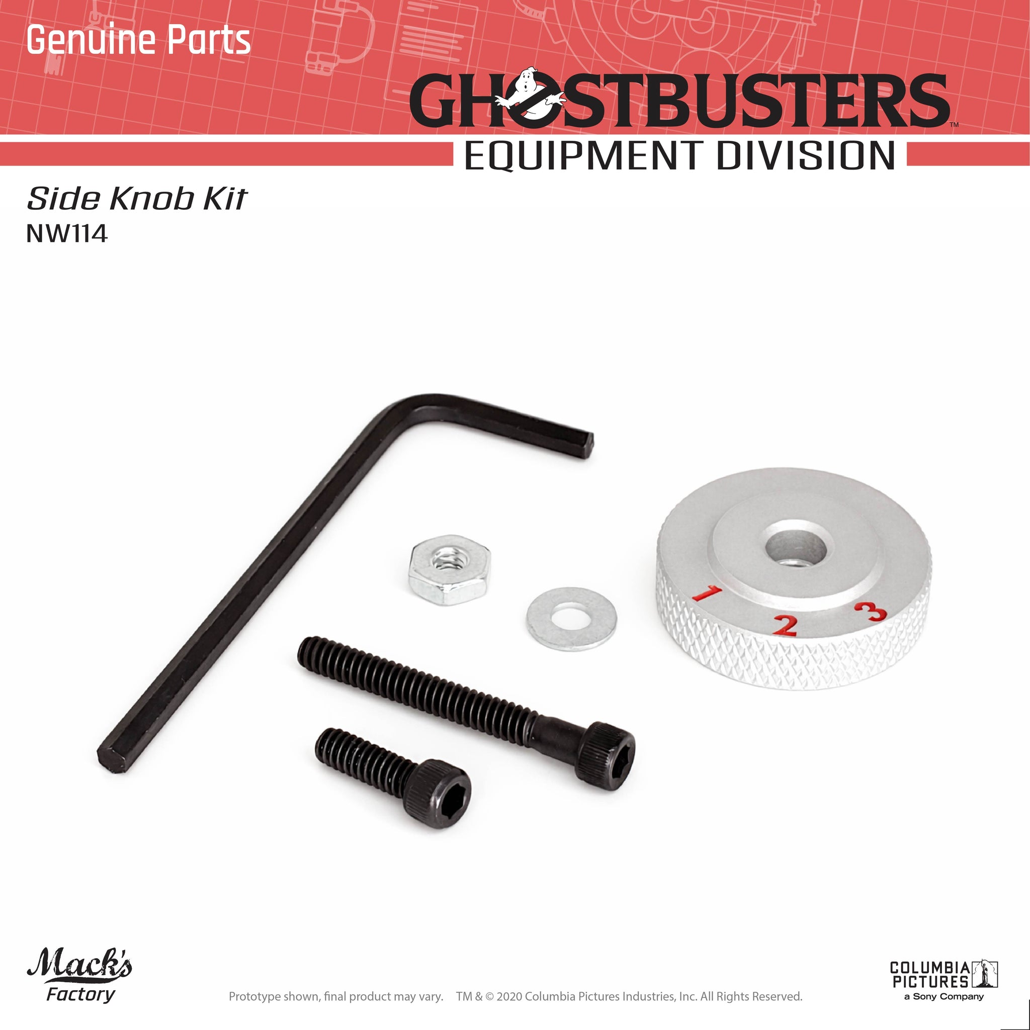 This kit contains a newly manufactured top knob and mounting hardware for use in new equipment builds or for the repair of damaged equipment. This knob can be used on both metal and resin Neutrona Wand bodies.